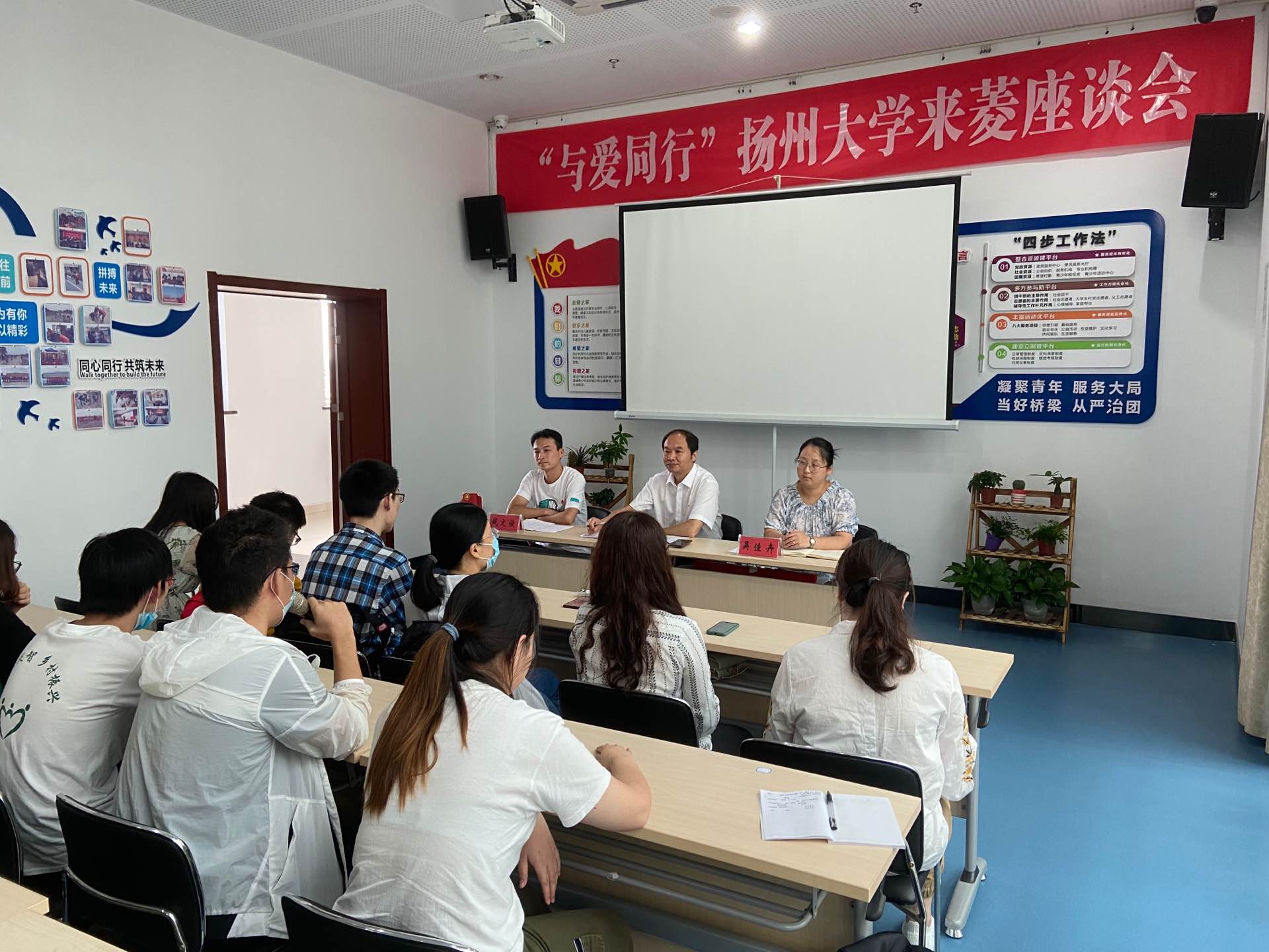 科学的种子不挑土壤 : 扬州大学“奇思益想”公益服务团赴高邮菱塘开展支教活动——“埋下科学种子,收获文明成果”座谈会7月27日,扬州大学物理科学与技术学院的“奇思益想”公益服务团在院党委副书记高红明、院团委副书记张月明带领下抵达高邮市菱塘回族乡开展暑期社会实践。当天上午,服务团参加了当天在菱塘民族文化宫开展的以“埋下科学种子,收获文明成果”为主题的座谈会,该会由菱塘乡团委书记钱文俊主持,副乡长吴佳卉、“奇思益想”公益服务团成员、参加返家乡活动的菱塘乡当地大学生等三十余人参加会议。