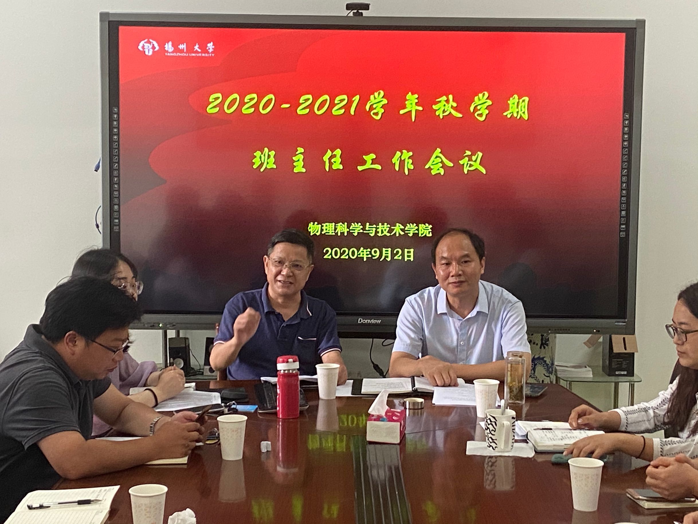 物理学院召开2020秋学期班主任会议。院党委书记王春雨强调思想引领,学风建设,创新创业等工作,院党委副书记高红明就老生返校、新生报到、返校后疫情防控等做指导和安排。