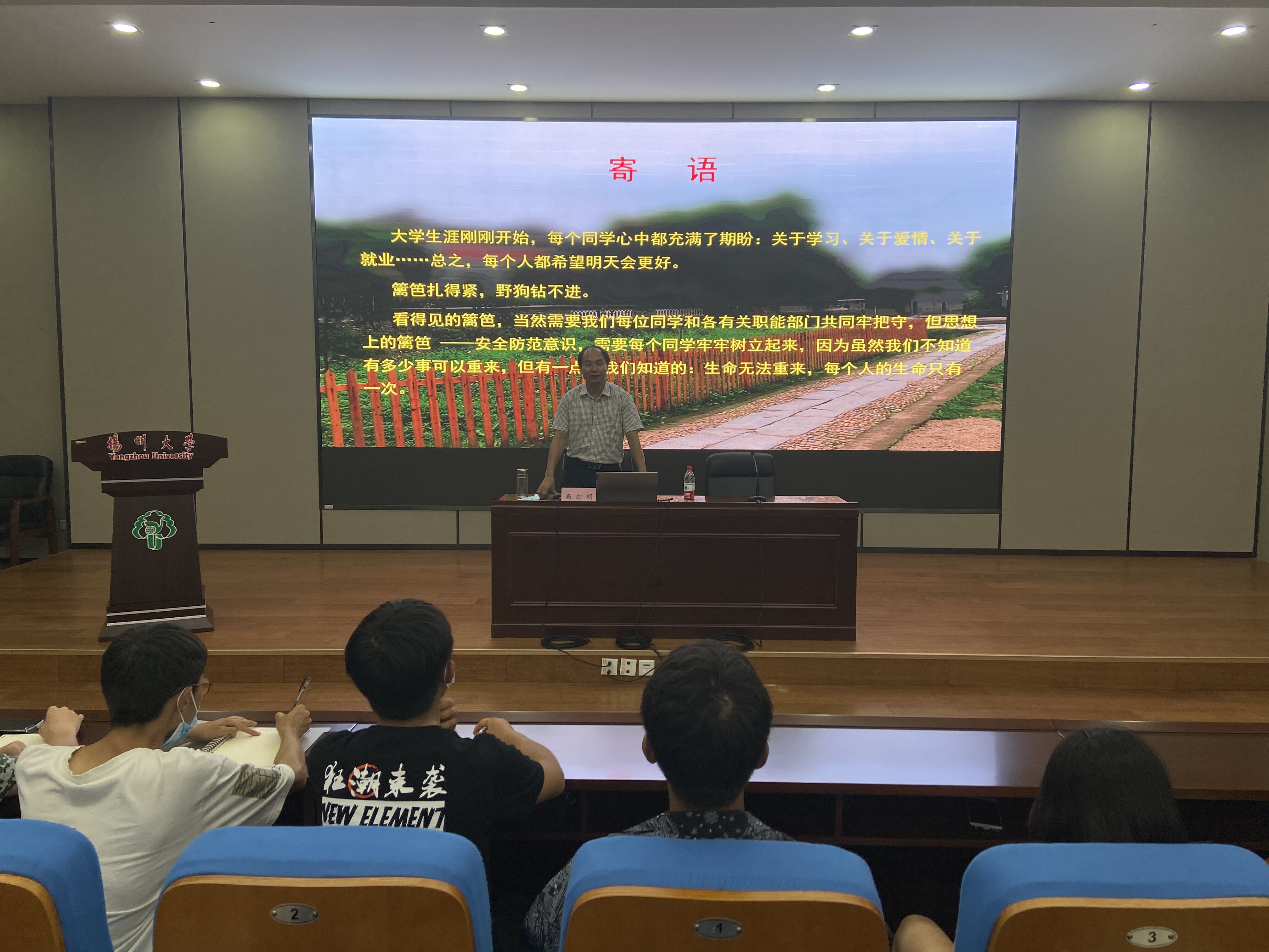 文明守纪树良风,安全教育我先行。9月20日晚,扬州大学物理科学与技术学院开展主题为“紧绷安全之弦,共创美好未来”的安全知识讲座,讲座由院党委副书记高红明主讲,2020级全体新生参加。