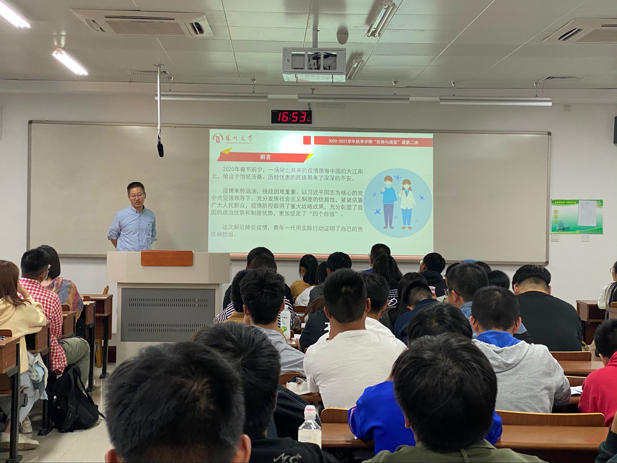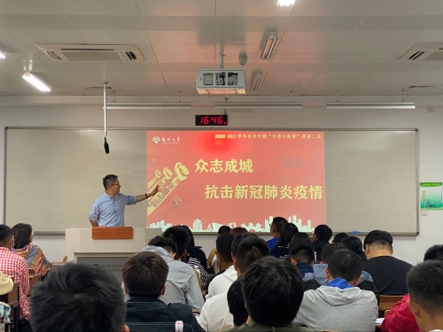 物理学院院长涂育松教授为大一学生讲述“众志成城 抗击新冠肺炎疫情”形势与政策课,学生认真听讲,兴趣浓厚!!