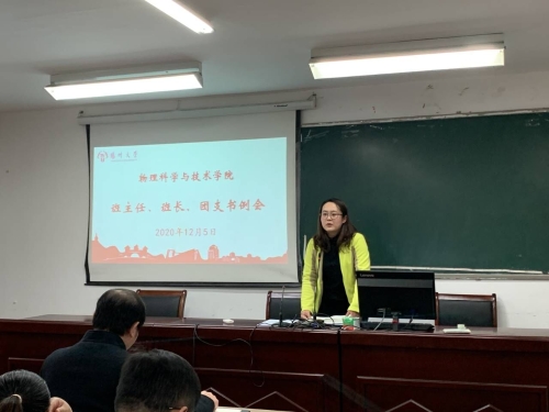 物理学院举行本科生“导师制”聘任仪式和班主任、班长、团支书例会为更好培养学生创造性思维、科技创新能力和科研精神,进一步关爱学生校园学习生活,我院于12月5日下午举行了物理科学与技术学院本科生“导师制”聘任仪式和班主任、班长、团支书例会。