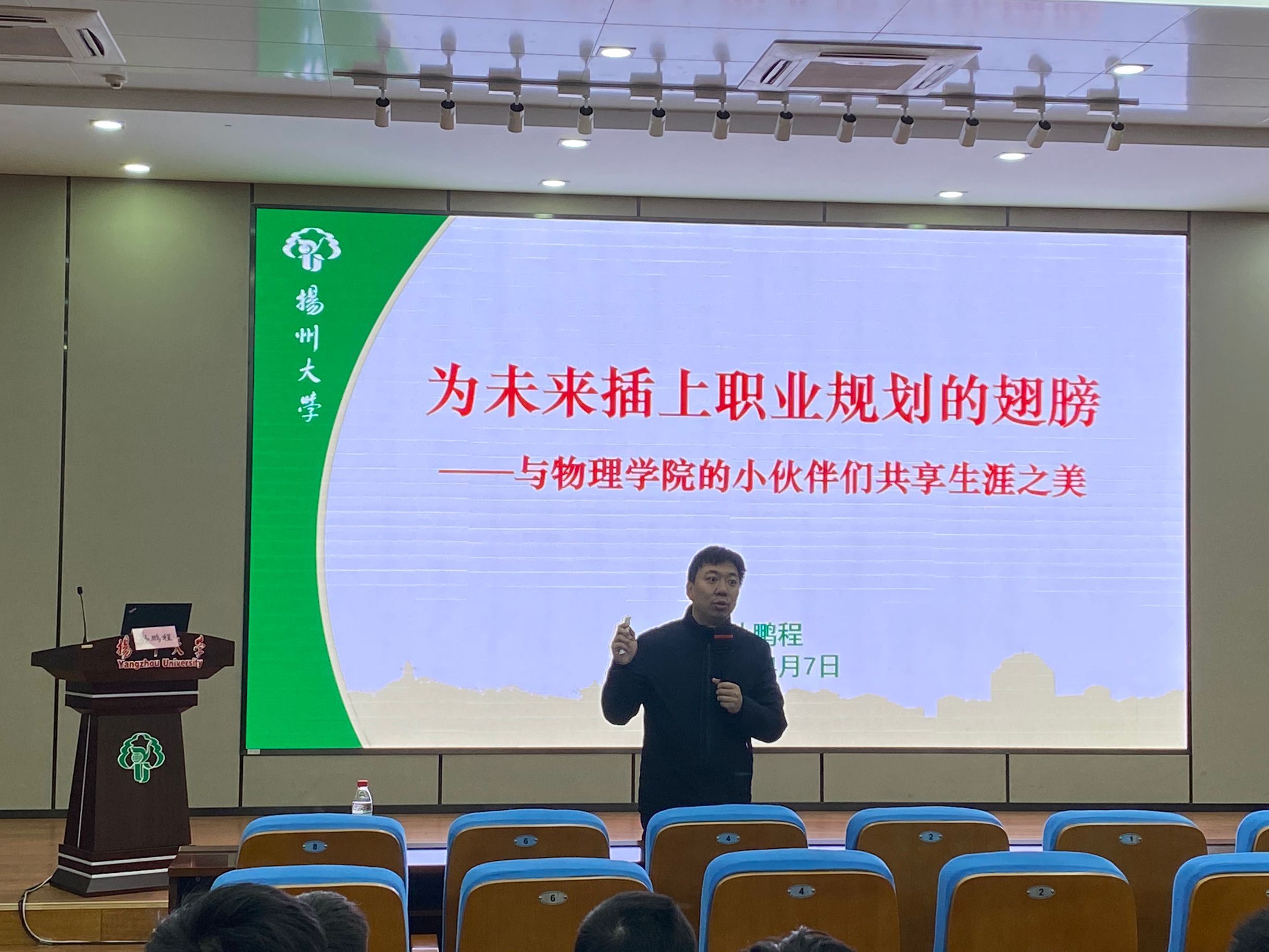 物理学院举行“做好职业规划,共享生涯之美”主题讲座为提高同学们的职业规划能力并树立正确的成才观、择业观、就业观,4月8日下午,我院邀请到扬州大学毕业生就业指导中心副主任孙鹏程老师为我院学子做题为“为梦想插上职业规划的翅膀”专题讲座。