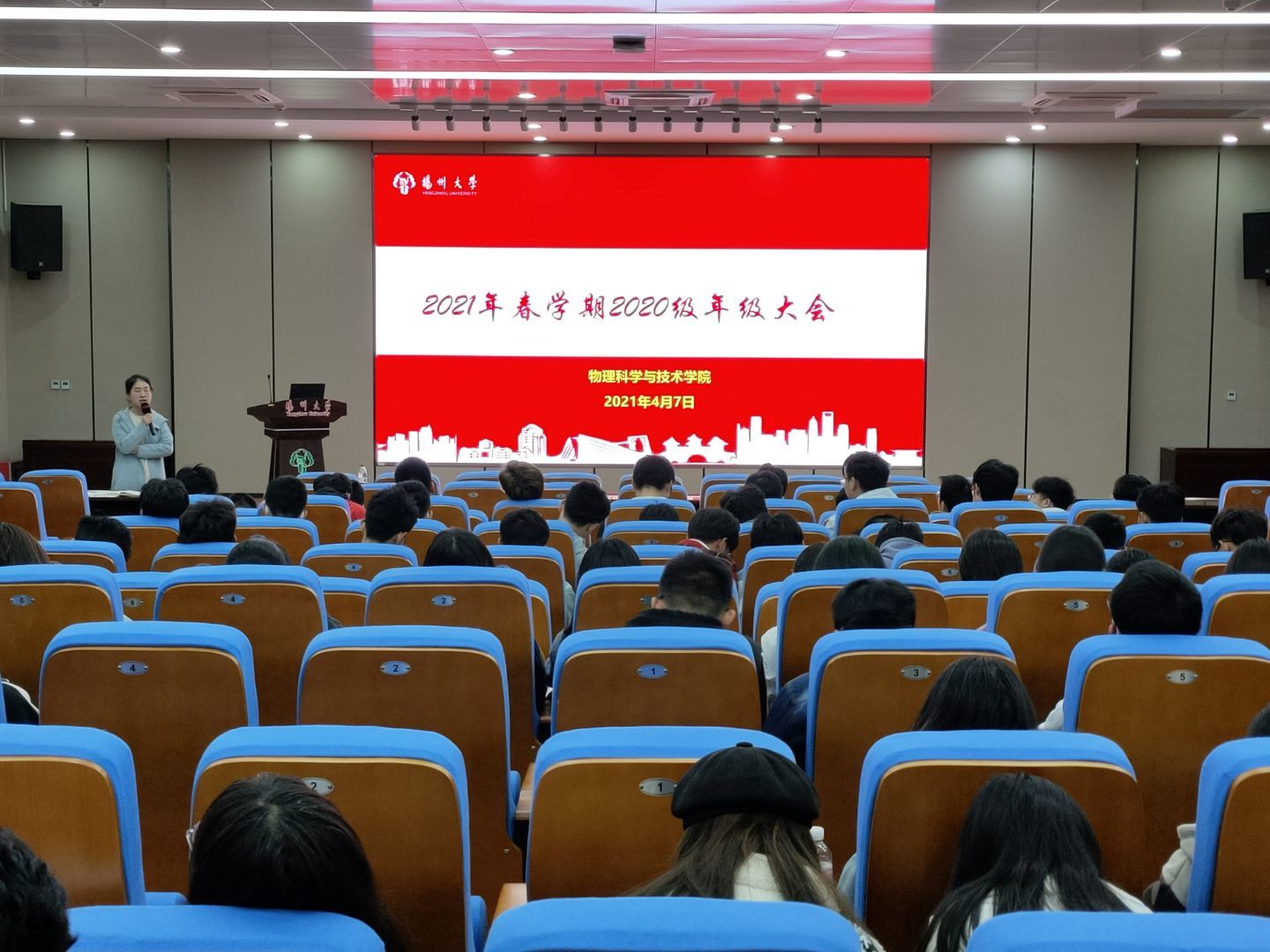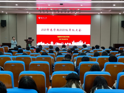 4月8日下午,物理学院2020级年级大会在新教学楼南楼报告厅召开,会议由辅导员荐小纯主持。大会密切贴合学生的学习和生活实际,分别从“宿舍安全与卫生”、“学生心理健康”、“三个希望”、“三个珍惜”等方面展开,旨在加强学院的学风建设,增强学生学习意识,关爱学生心理健康。