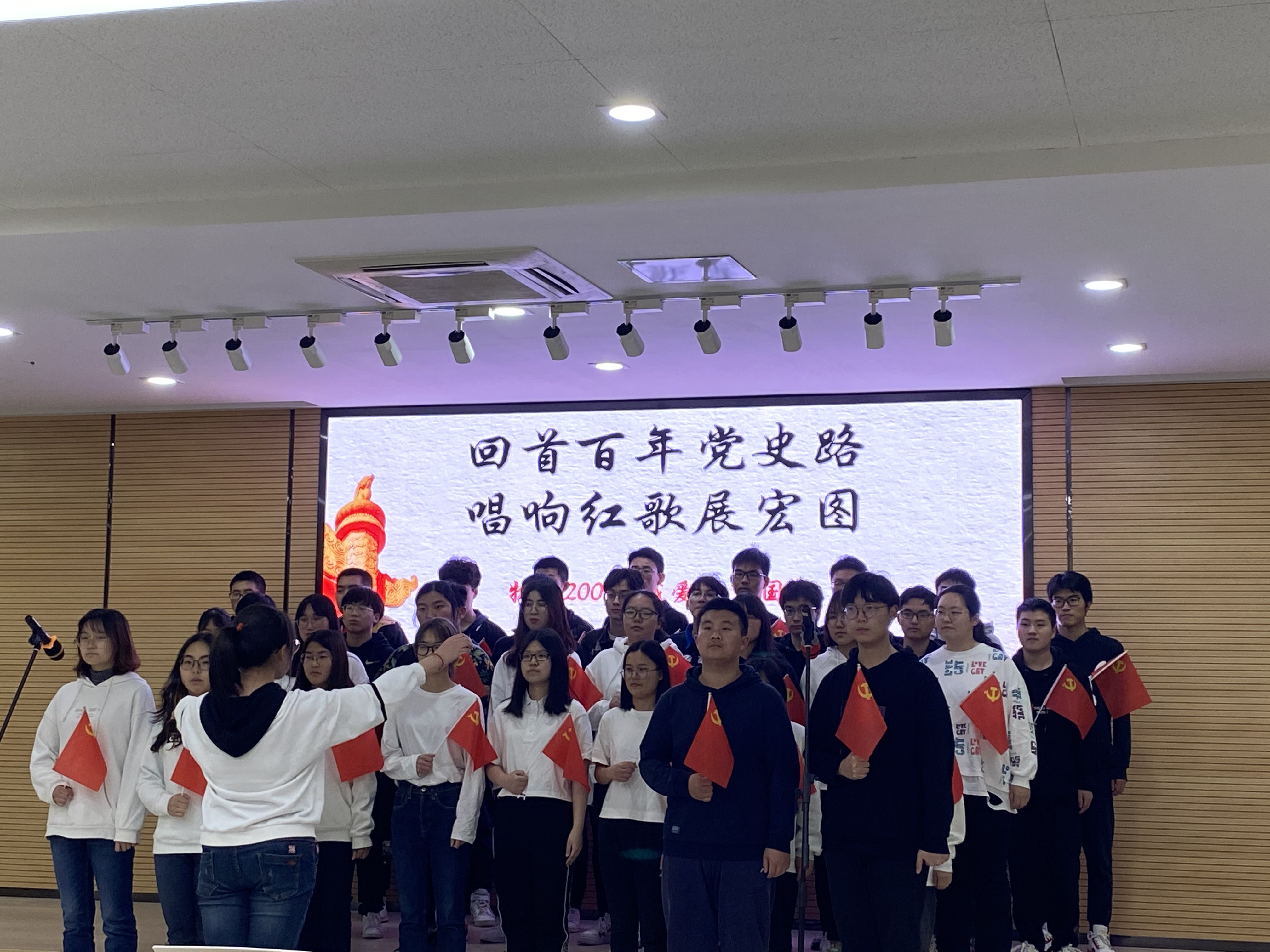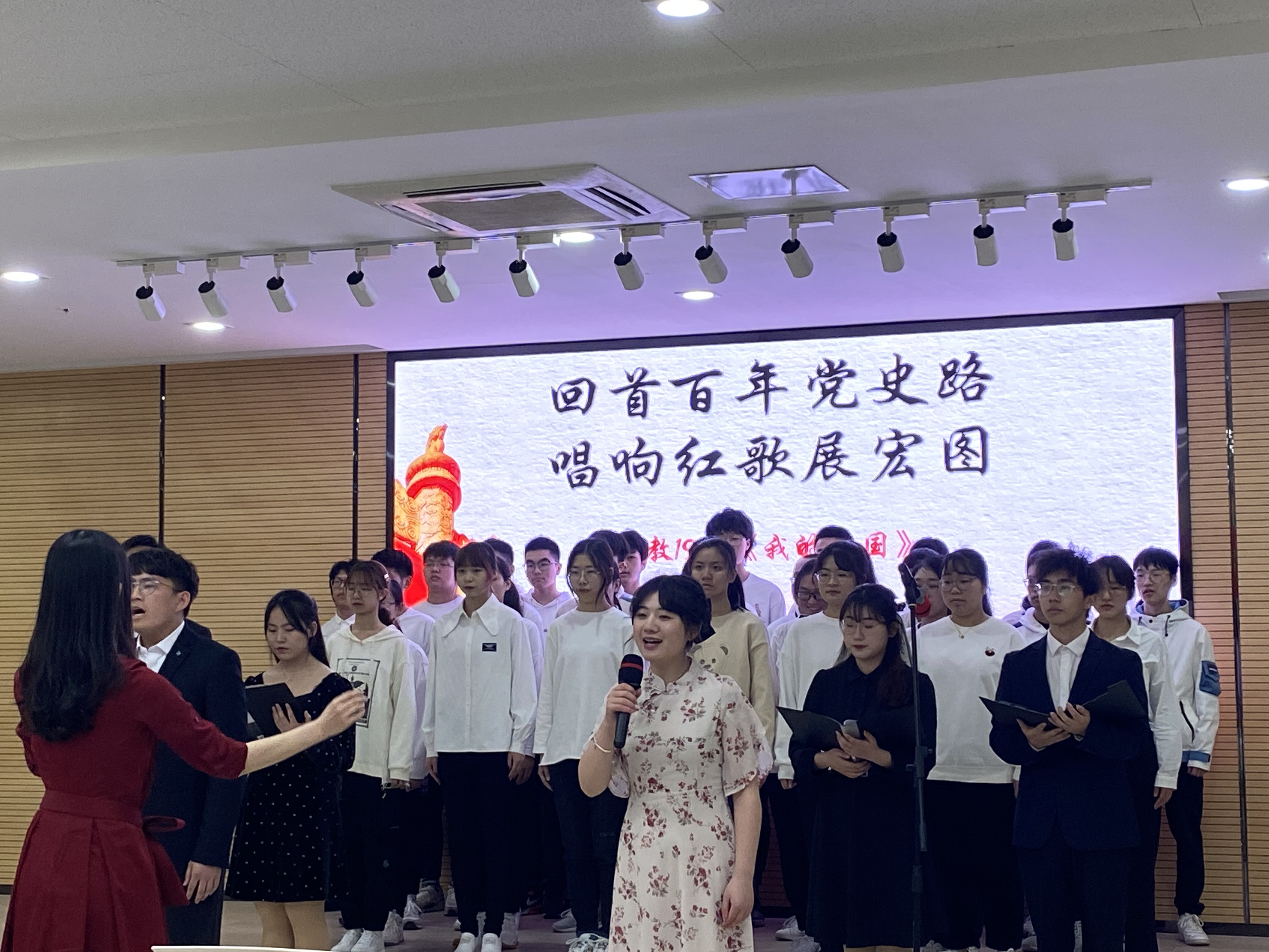物理学院举行“回首百年党史路 唱响红歌展宏图”大合唱初赛为庆祝中国共产党成立一百周年,弘扬爱国精神,重温红色经典,我院于4月14日在南楼大报告厅举办“回首百年党史路 唱响红歌展宏图”大合唱初赛。院辅导员荐小纯、郭汉涛,音乐学院黄钰晶、朱涵睿作为评审一同欣赏了本次合唱比赛。