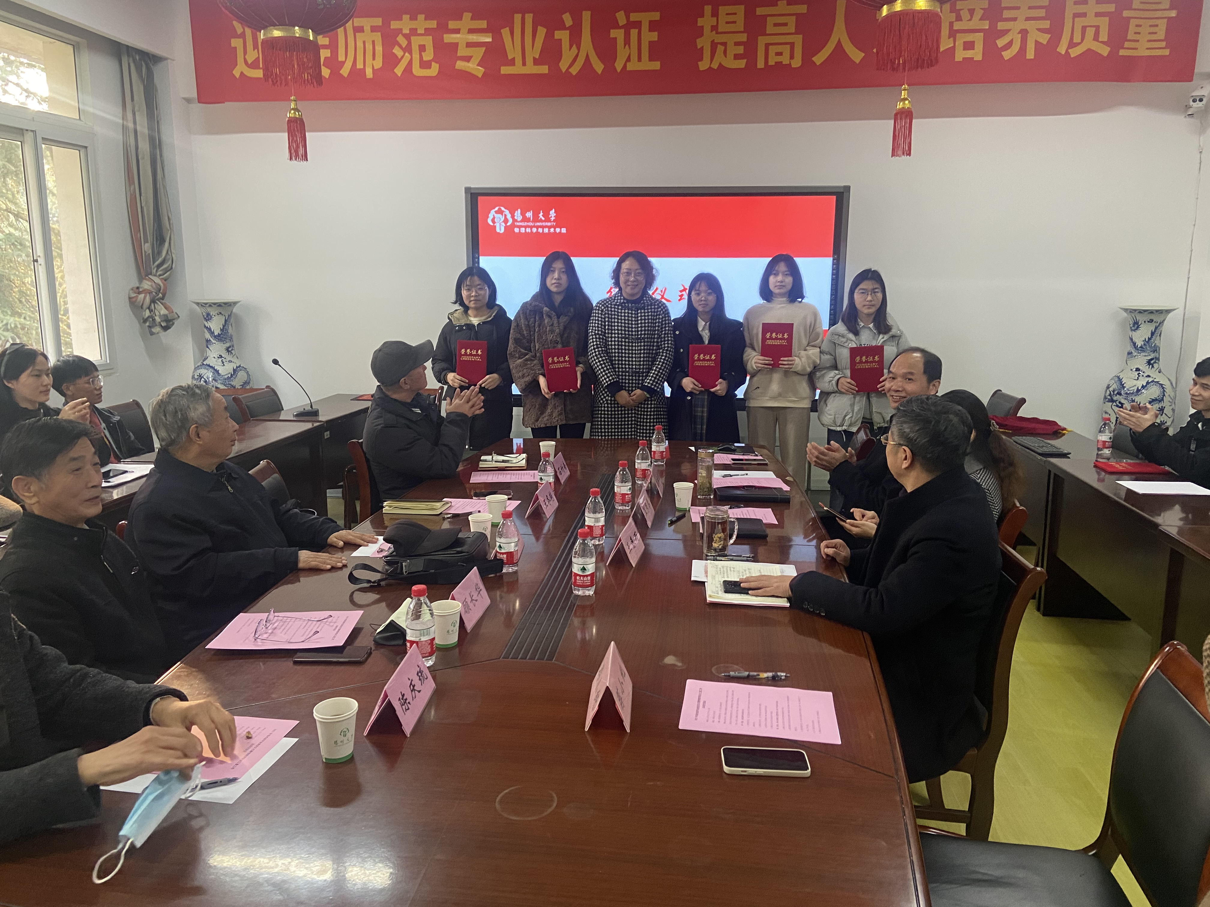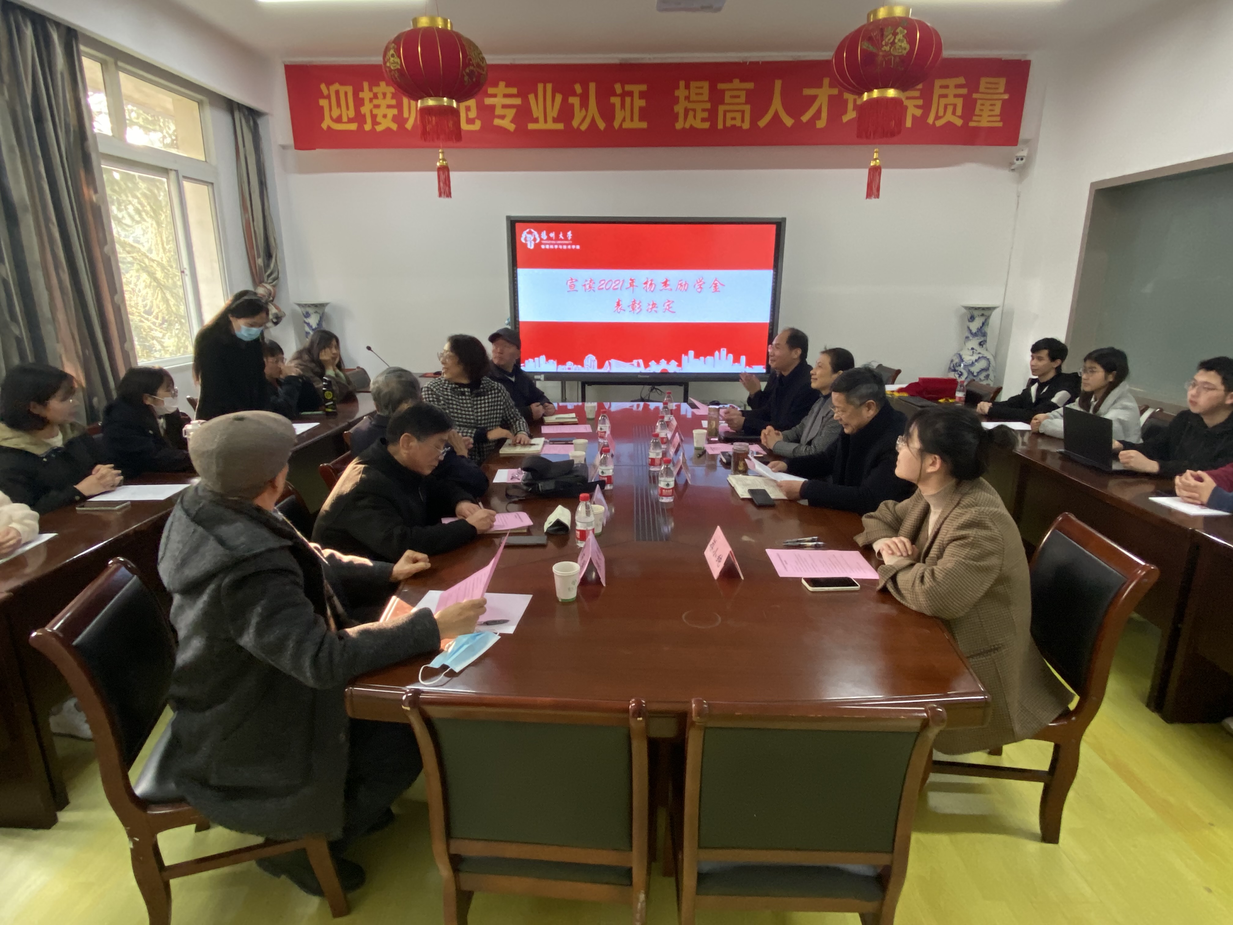 12月8日下午,我院于瘦西湖校区物理楼213会议室举行2021年扬杰励学金颁发仪式暨关工委工作总结交流会。校关工委副主任梁隆圣,校对外联络办公室副主任王秀琴,扬杰电子科技股份有限公司人力资源总监王冬艳,院党委书记、关工委名誉主任王春雨,院关工委副主任顾长华、石竹南,院关工委委员陈庆琉出席本次大会。此次大会由院党委副书记、关工委主任高红明主持。