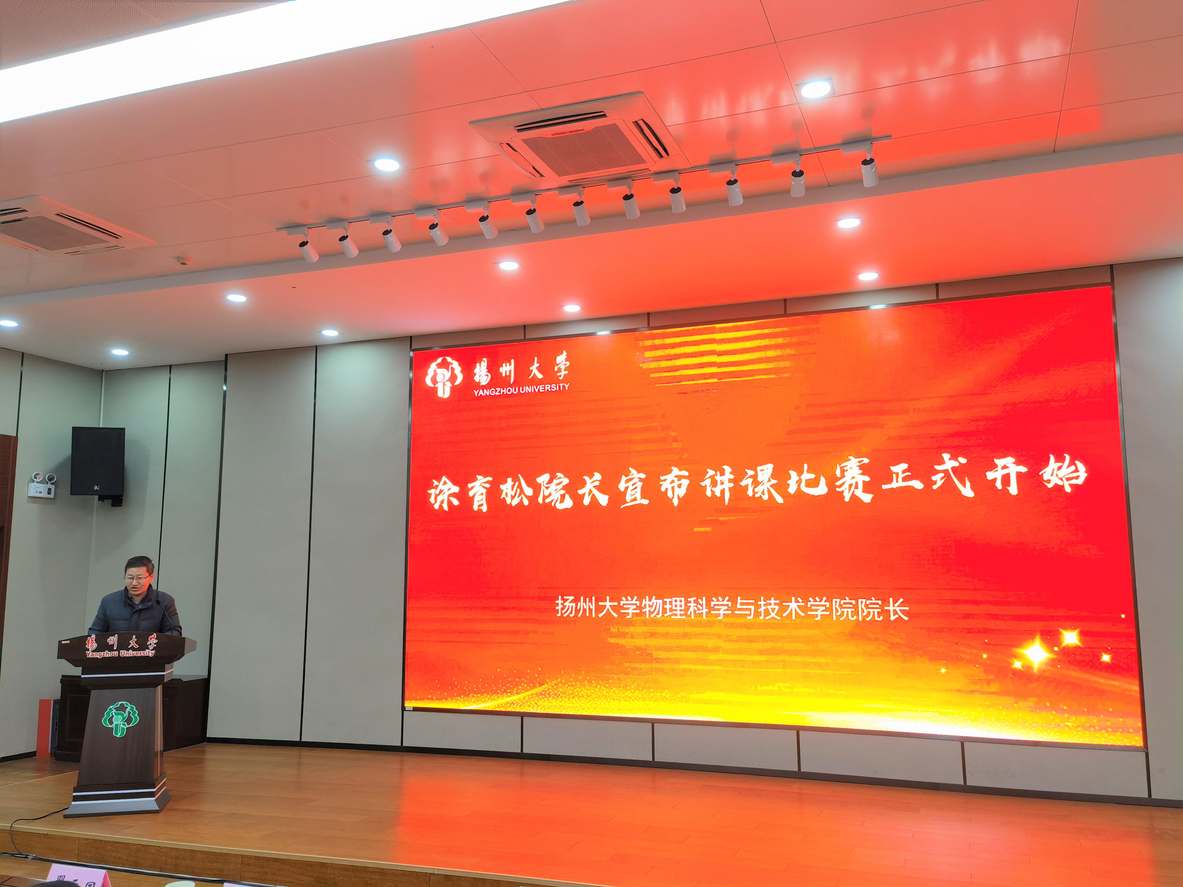 开幕式首先由俞处长致辞,她表示物理学院一贯重视师范生教学,培养了一届又一届优秀的物理教师,举办讲课比赛是提升教育专业学生培养质量的重要举措,希望选手们珍惜比赛机会,发挥自身最佳水平,同时预祝本次比赛圆满成功。评委代表王伟院长讲解此次比赛流程和评分规则,院长涂育松老师宣布比赛开始。