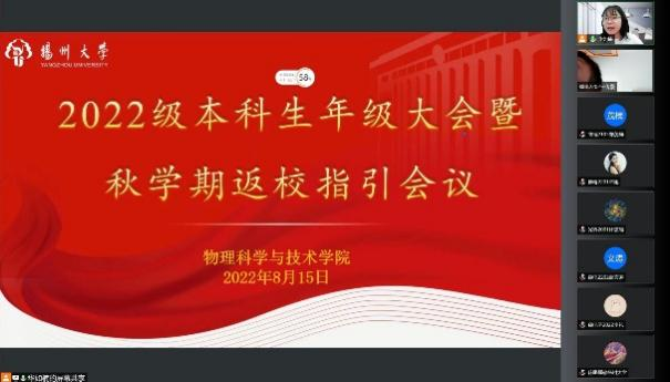 8月15日上午,学院线上召开2022级本科生年级大会暨秋学期返校指引会议。院党委副书记高红明、院团委副书记张月明、辅导员郭汉涛,全体2022级班主任、班主任助理以及2022级全体本科生参会,会议由辅导员华如楠主持。