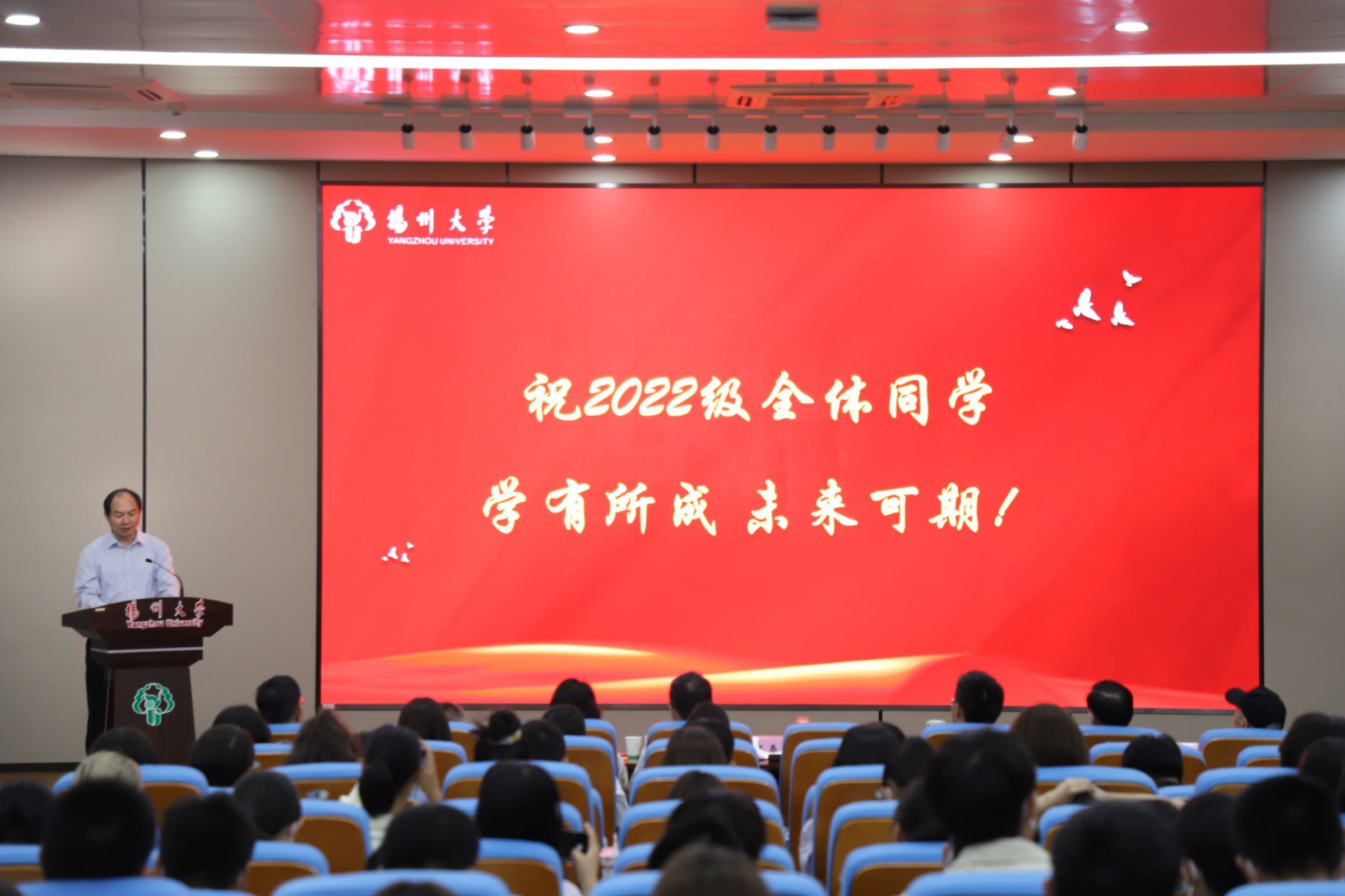 9月17日上午,我院于瘦西湖校区新教学楼S405报告厅举行2022级本科生开学典礼。院党委书记王春雨、院长涂育松、副院长王伟、副院长王健、副院长于凤云、院关工委副主任顾长华、石竹南等领导老师出席本次典礼,2022级全体本科新生参加典礼。典礼由院党委副书记高红明主持。