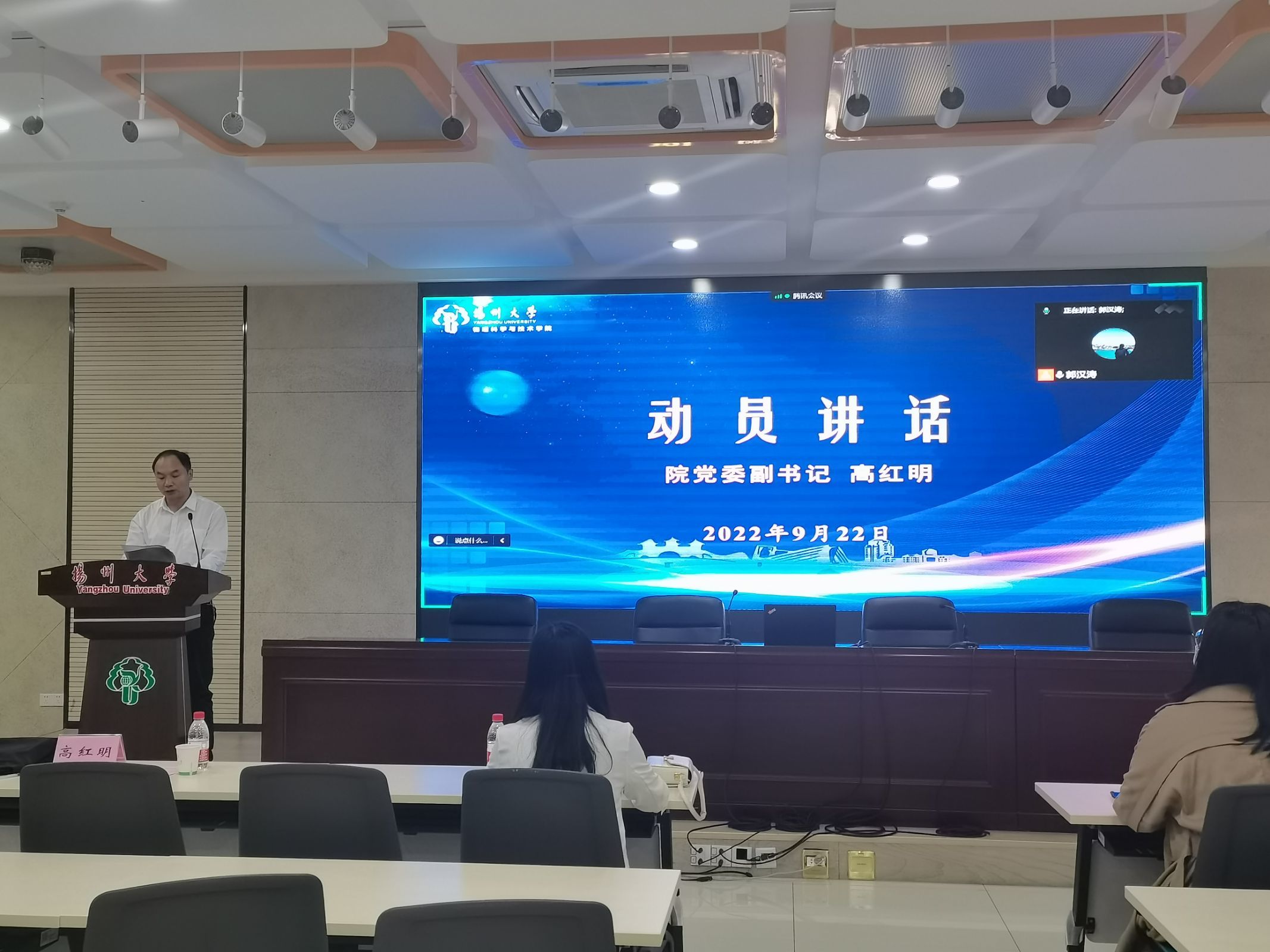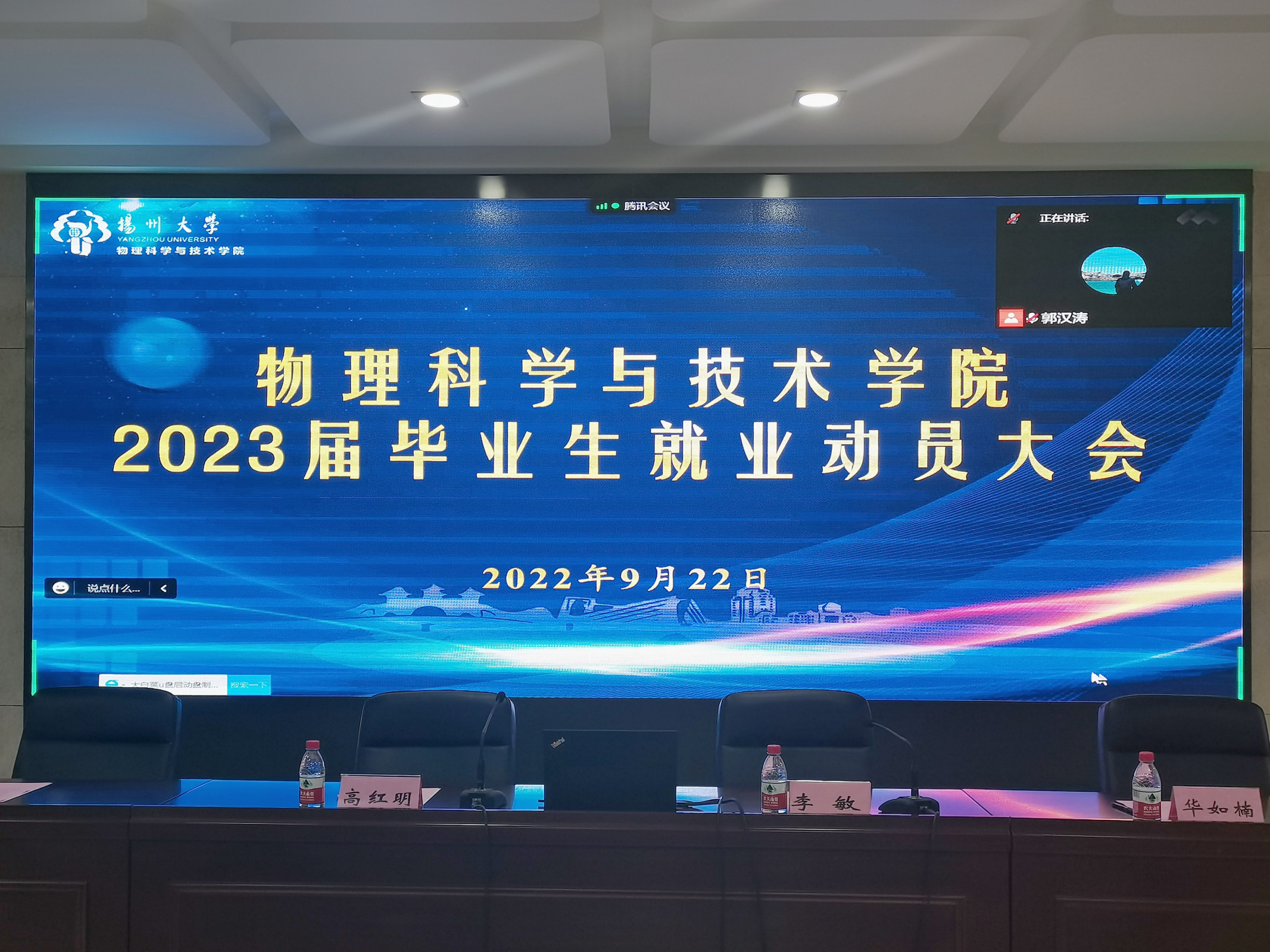 为确保2023届毕业生就业工作的顺利展开,进一步提升学院毕业生就业质量,9月22日,我院采取线上线下会议相结合的形式召开2023届毕业生就业动员大会。扬州大学毕业生就业指导中心副主任李敏老师、院党委副书记高红明老师、院团委副书记张月明老师、辅导员荐小纯老师、华如楠老师及全体2023届毕业生出席本次大会。大会由辅导员郭汉涛老师主持。
