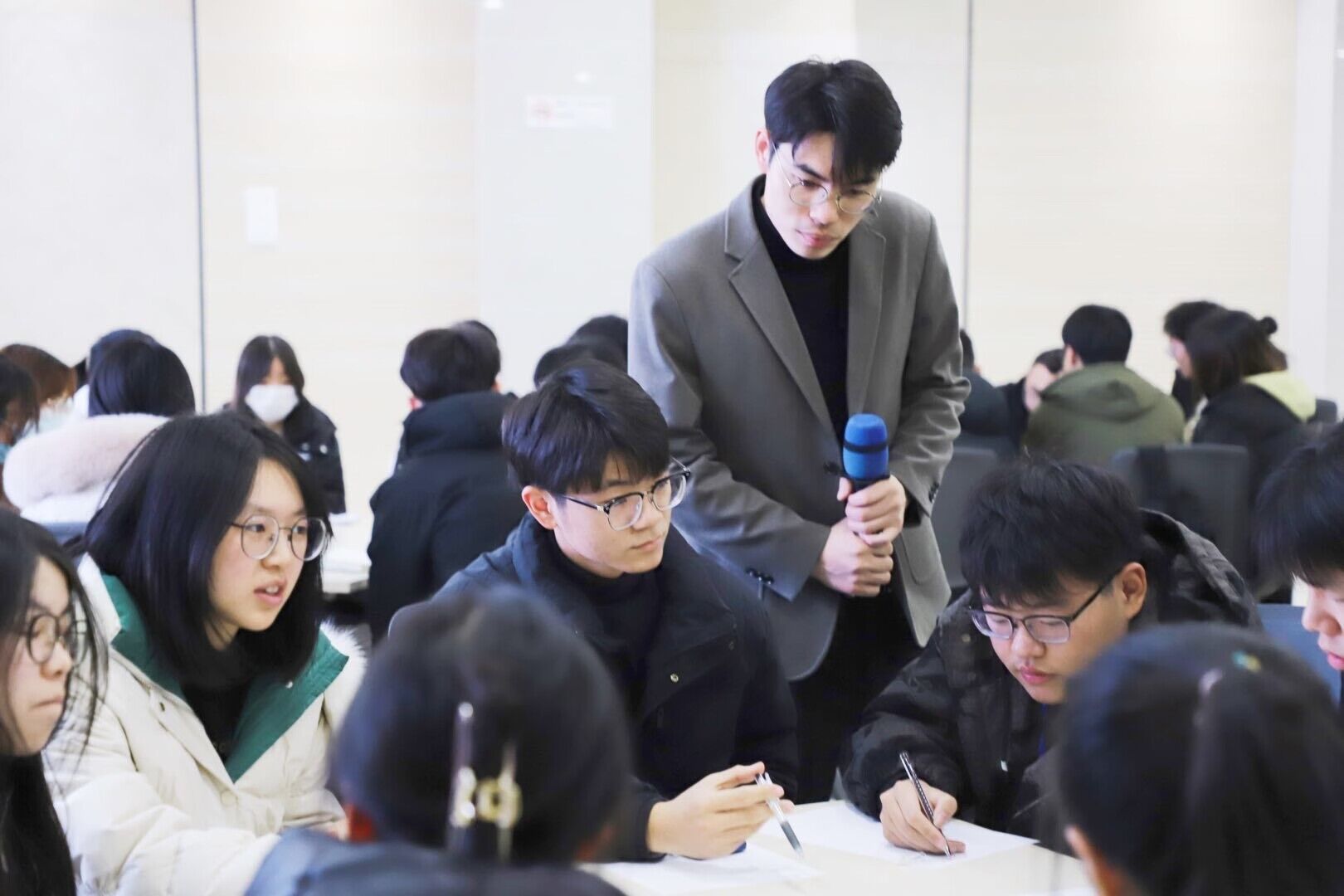 上午,我院辅导员暨此次培训班班主任华如楠老师主持本次培训班的开班仪式,为各位学员讲述了团课的重要意义,带来了往期的精彩分享,并重点强调了团课的纪律。其后,我院辅导员郭汉涛老师为学员们带来团课第一讲——“职业生涯规划——核心就业能力探索”。讲座伊始,郭老师带领所有学员们进行了“破冰”游戏,课堂以互动性的方式生动有趣地徐徐展开。在他的引导下,学员们以小组讨论的形式,深入模拟了公司面试情景,共同探讨在未来的职业生涯中将会遇到的问题及所需具备的能力,几轮的头脑风暴后,学员们以小组汇报的形式相互分享所得,收获满满。