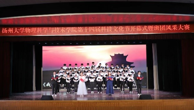 5月28日下午,我院第十四届科技文化艺术节开幕式暨“闪亮青春 沐光前行”班团风采大赛在荷花池校区大学生活动中心小剧场拉开了帷幕。院党委书记王春雨,院长涂育松,校关工委顾问刘方云,院关工委副主任顾长华、石竹南,院关工委委员陈庆琉,院党委副书记毕瑜林,副院长王伟,院行政、院团委全体老师,2021、2022级本科生班主任以及全体本科生出席本次活动。