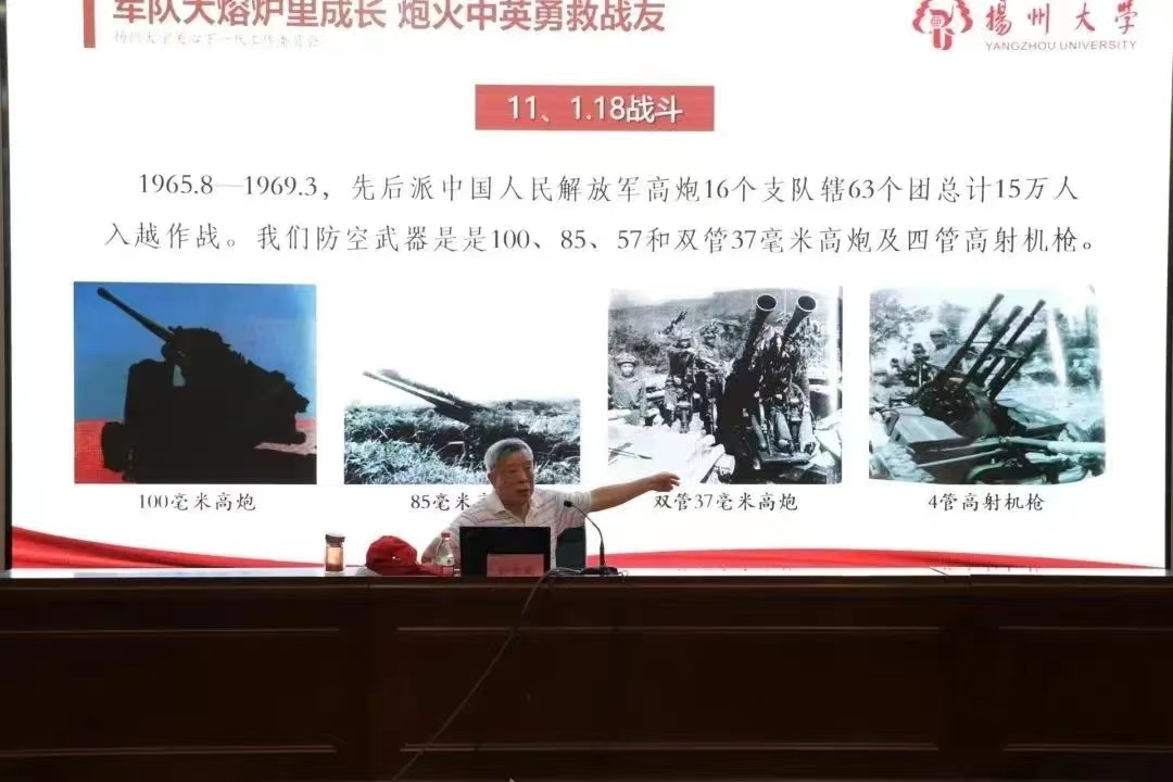 9月8日晚上6点半,我院邀请校关工委顾问刘方云老师于瘦西湖校区8号楼S405为2023级本科新生开展了一场题为“军队大熔炉里成长 炮火中英勇救战友”的入学教育主题报告,活动由院团委书记张月明主持。