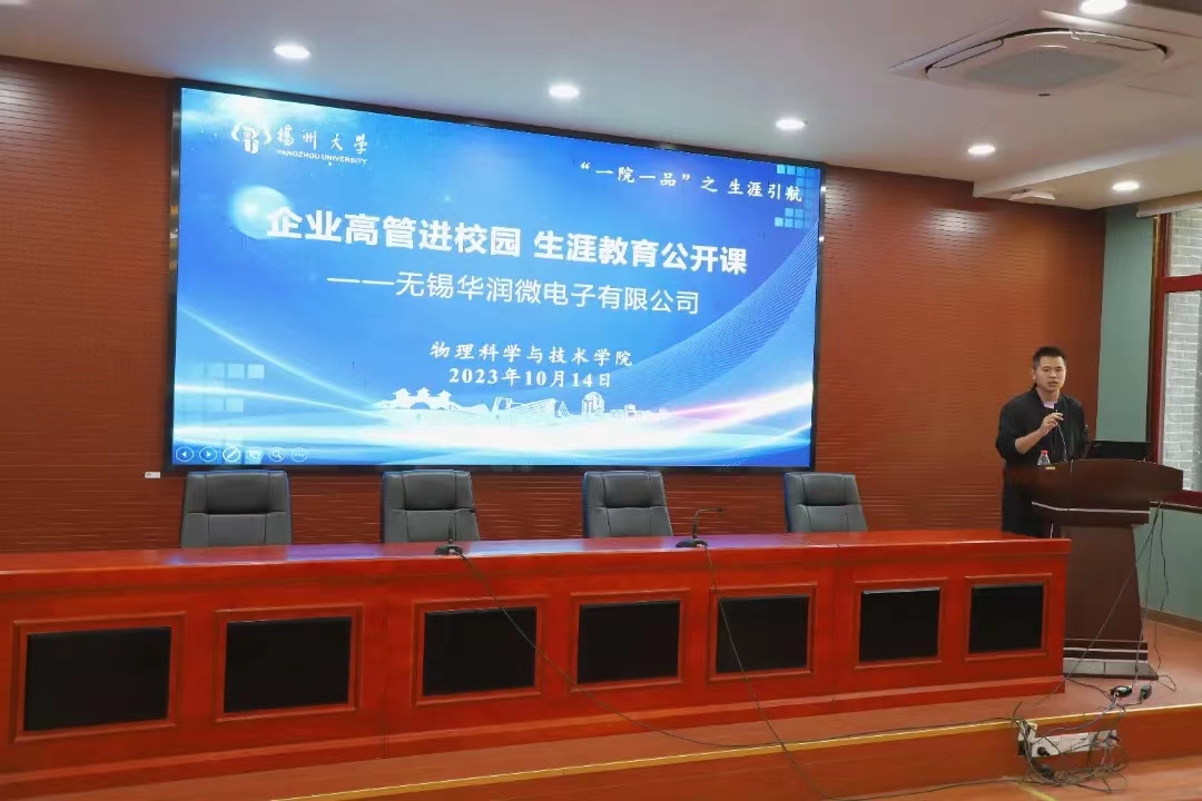 10月14日下午,我院邀请到了无锡华润微电子制造中心8A工厂党支部副书记马如军老师于瘦西湖校区中敏报告厅开展了题为“企业高管进校园,生涯教育公开课”的主题报告。该活动由院党委副书记毕瑜林主持,辅导员郭汉涛、许武韬、杨健翔老师以及23级微电子科学与工程、光电信息科学与工程专业全体同学参加了此次活动。