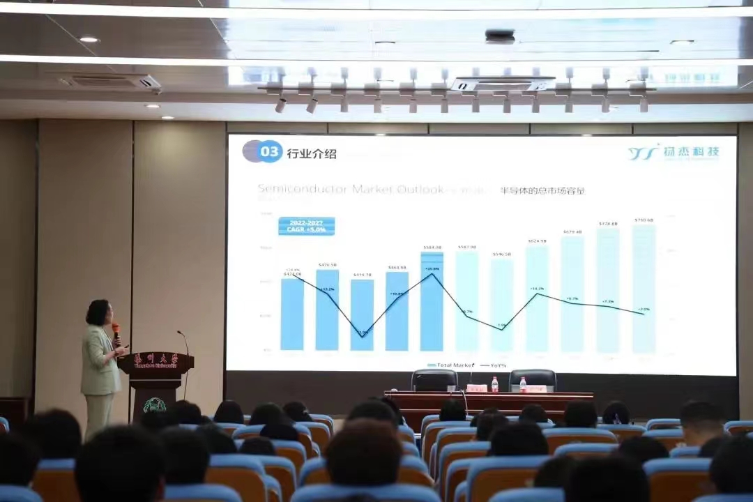 在报告中,王冬艳老师通过数据统计图、社会需求量、未来科技供求等实际因素,向同学们展示了半导体芯片行业的强劲发展势头。在当前半导体行业人才短缺的大环境下,我院相关专业的学生也将迎来前所未有的挑战和机遇。