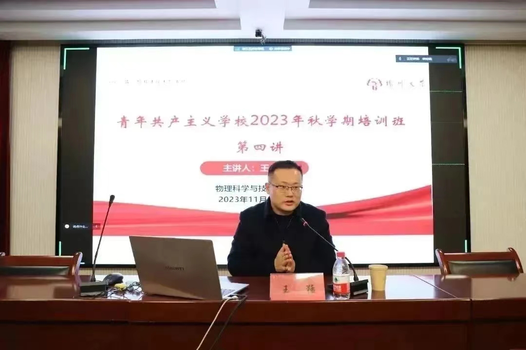11月29日下午6:30,我院邀请学生工作部(处)学生事务管理科主任王猛老师,在瘦西湖校区教科院西附楼二楼报告厅开展了题为“学生骨干在大学生基础文明建设中的定位与作用”的青年共产主义学校2023年秋学期培训班第四讲。活动由院团委书记张月明老师主持。