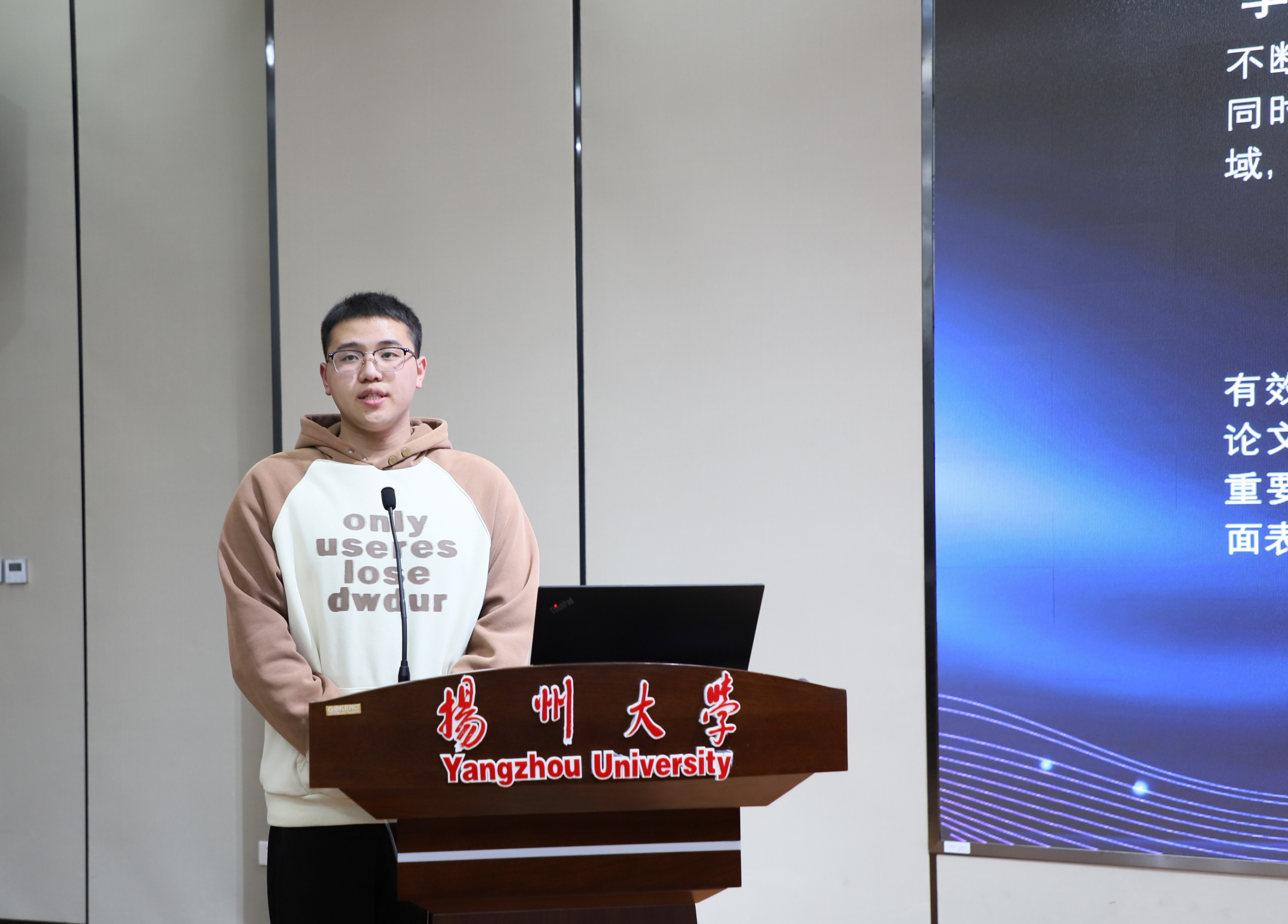 随后,霍如斌同学以其丰富的科创经验,分享了科创项目带来的诸多好处,如个人能力的提升、成果的取得以及宝贵的经验与感悟。他指出,科研项目对执行力、领悟力、沟通力等综合能力有着极高的要求,并提醒同学们在日常学习中,应注重拓宽学术知识的深度和广度,为未来的科创竞赛做好充分准备。