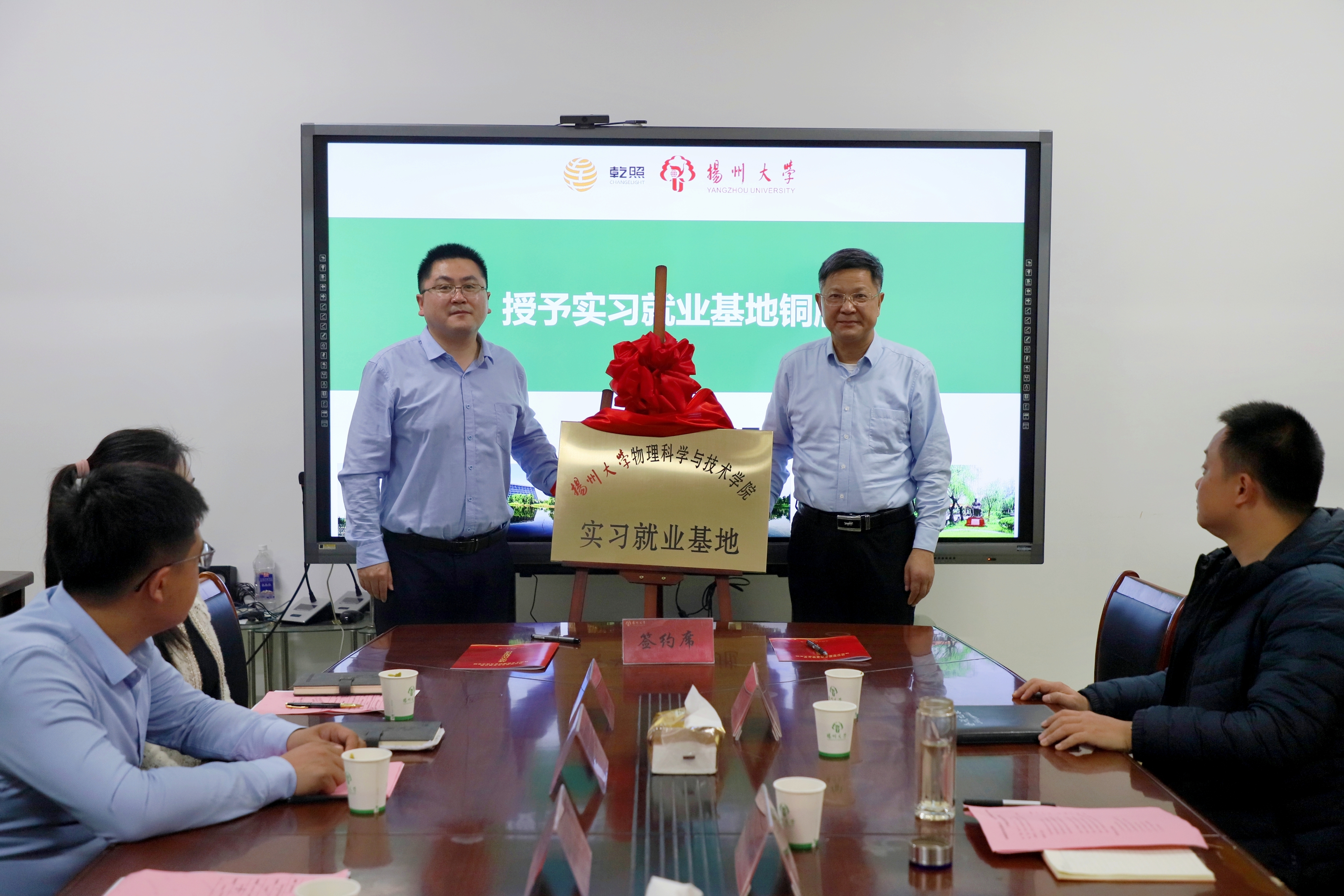 签约仪式上,扬州大学物理科学与技术学院还向扬州乾照光电有限公司授予了“实习就业基地”铜牌,此举标志着扬州乾照光电有限公司将成为我院学生们重要的实习实训与就业平台,为他们的职业生涯开启更加广阔的空间。
