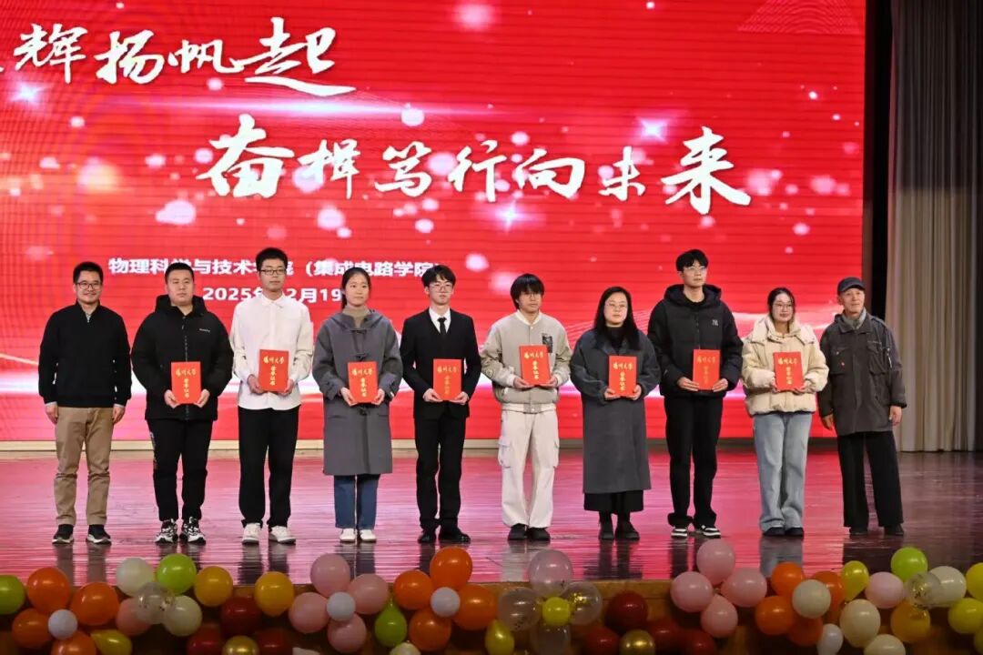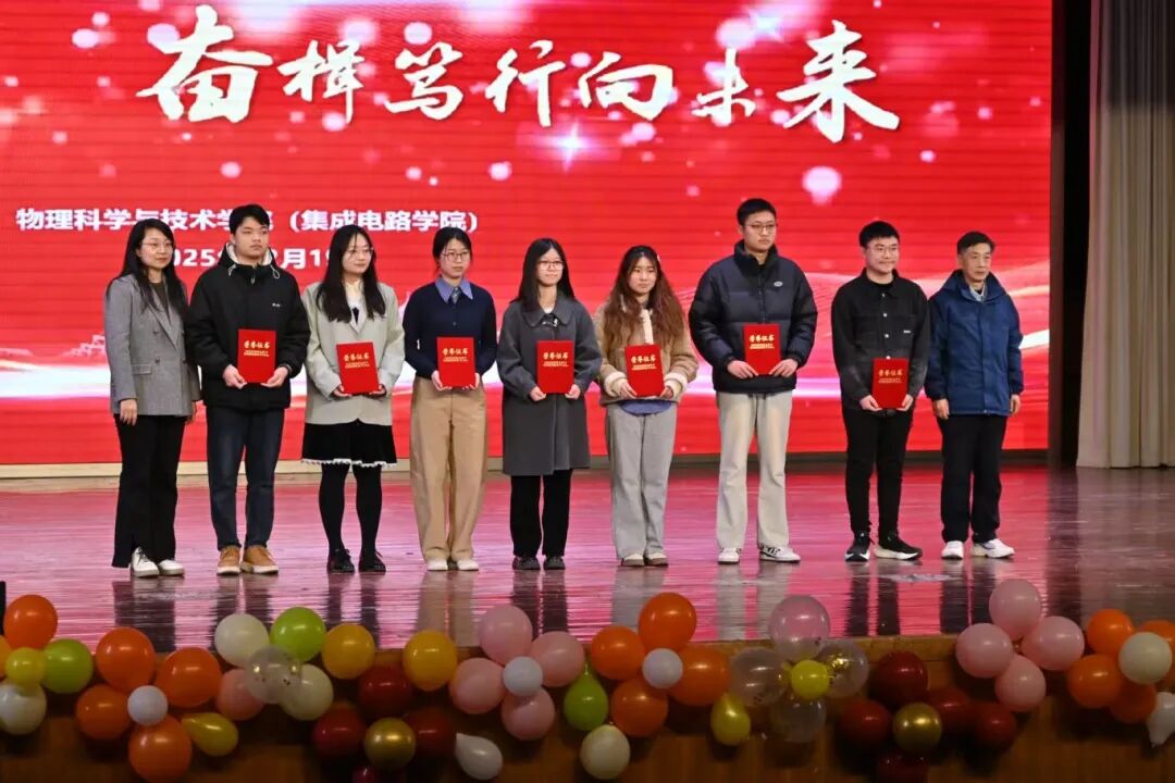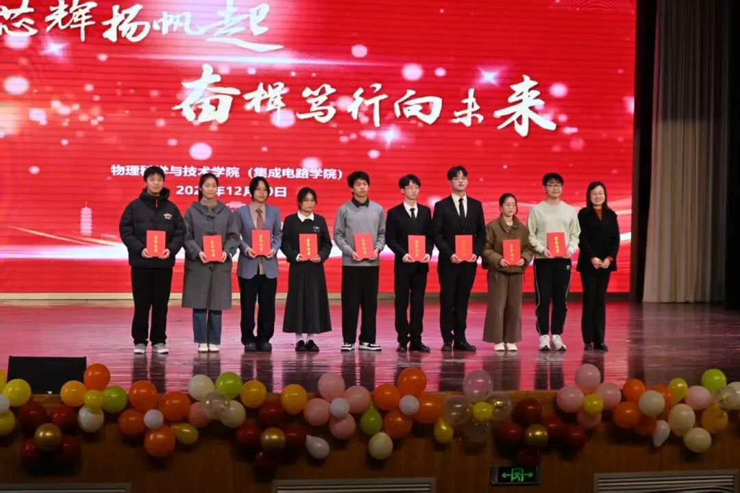 校长特别奖学金获得者:聂梦祥、芮雪李成、熊文杰、邵湛卢本科生国家奖学金获得者聂梦祥、芮雪、侯惟晔、胡宸瑜、何智雯研究生国家奖学金获得者李成、杨镇豪、闫旭晖熊文杰、邵湛卢、杨晶、周吉祥、毛雨晴、王舒、李杰、雷勇、艾文娟、周羽立德树人奖学金获得者赵奕欣扬州大学校园先锋侯惟晔、陆晨宇校先进班集体物教2202校优良学风班微电2201、物教2301、物教2302、光科230123物理学、24电子信息、24学科物理