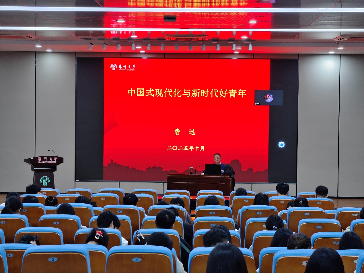 为深入学习贯彻党中央关于推进中国式现代化的战略部署,引导青年学子深刻理解时代责任与历史使命,2025年11月13日,“理想·担当·吃苦·奋斗——中国式现代化与新时代好青年”为主题的专题党课于S405教室成功组织开展。本次党课特邀马克思主义学院教授、校关工委理论宣讲组(讲师团)组长费迅老师担任主讲,我院发展对象参加了学习。