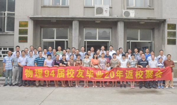 2014年8月8日,这是一个美好的日子,这一天,物理学院1994届的莘莘学子们,在阔别了20年后,又回到了母校。物理科学与技术学院全体院领导、部分老领导、校对外联络办公室负责同志、班主任、辅导员、任课老师代表应邀参加校友聚会活动。学院领导和对外联络办公室负责同志共同向校友们颁发了校友徽章。