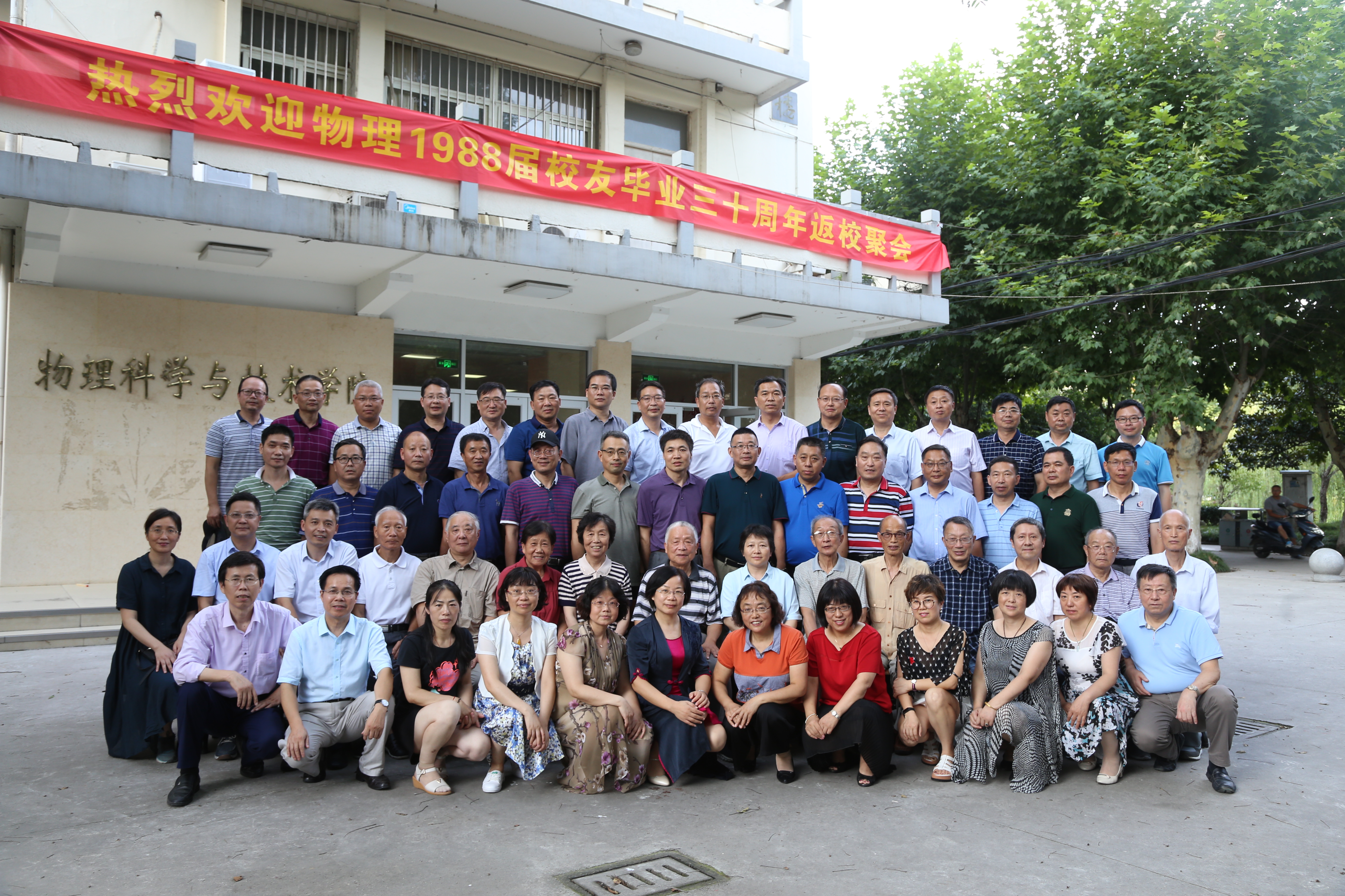 2018年7月27日,物理88届40多位校友返回母校,举行毕业30周年师生联谊活动。物理科学与技术学院党委书记王春雨、院长曾祥华,班主任冉小明、马林,部分老领导、当年的任课老师、校友总会办公室负责人应邀参加了活动。联谊会由杨志红校友主持。